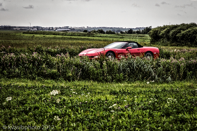 Mette ble vi. Veldig mette. så vi rullet etter hvert ut til bobilen Ottmari igjen, der vi fortsatte å rulle vestover. Var nok et sportsbiltreff som ble arrangert ett eller annet sted for vi møtte mye gromt da vi nærmet oss Hanstholm. Kjørte til siden for å fotografere alt det gromme, og rakk så vidt et slags bilde av den siste som passerte.