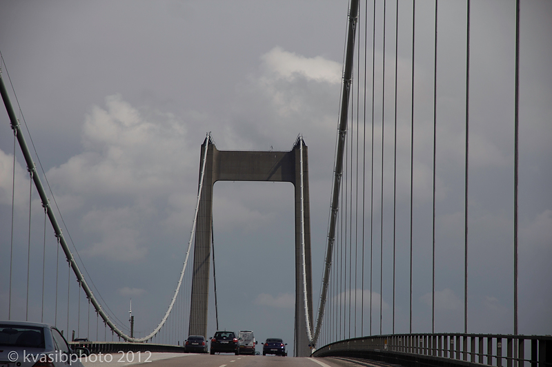 Stor motorveier i et lite land er effektivt. Før vi skjønte noe som helst, og rett etter en skikkelig regnskur befant vi oss på broen over til Jylland.