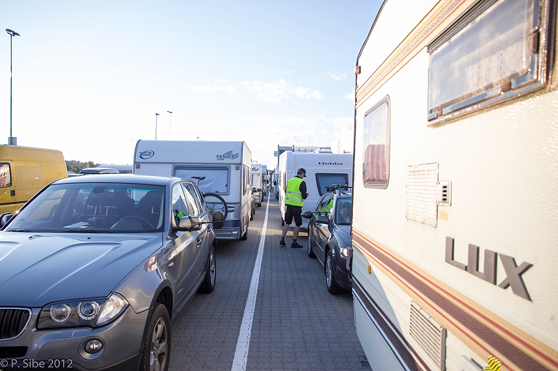 Som skrevet så gjort. Ikke mye å fortelle om denne delen av turen utenom at det var mørkt og at vi oppdaget på kaia i Larvik at vi ikke var alene om den planen. En stor rekke bobiler og campingvogner sto allerede klare for neste avgang som skulle gå av stabelen  morgenen etter. Vi stilte oss i køen bak de andre nevrotikerne og litt etter sovnet vi til lyden av havnearbeider og  nabosnorking.