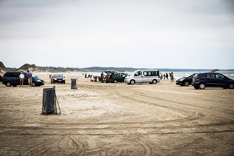 Fortsatt litt skyet vær i Danmark, men værmelderen hadde tydelig lovet å forandre på dette, for stranden ble stadig fullere av folk og  biler.